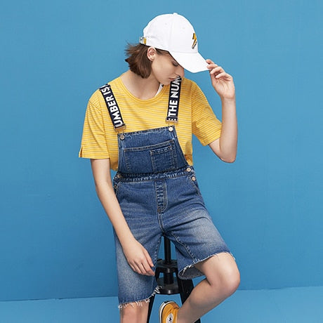 Toyouth Summer Women Short Denim Jumpsuit Washed Casual Jeans Shorts Letter Shoulder Strap Overalls Bib Cowboy Shorts female